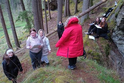 I v letošním roce se v rámci Dne Země uskutečnil výlet do Kašperských Hor, kde si naši deváťáci prošli jednu ze zlatokopeckých stezek kolem tamějších štol při Zlatém potoce. V průběhu vycházky probíhala stopovaná, při které žáci ve skupinkách plnili úkoly na stanovištích. Poslední úkol byl umístěn v blízkosti velké štoly, která je částečně zatopená. Exkurze tak byla završením výuky geologie z prvního pololetí 9. ročníku. Všichni žáci se chovali úžasně a při vyplňování pracovních listů projevili mnoho znalostí z oboru přírodních věd. Moc všechny účastníky chválím, byl to moc prima den a nakonec i počasí docela vyšlo. Mgr. Václav Šelmát